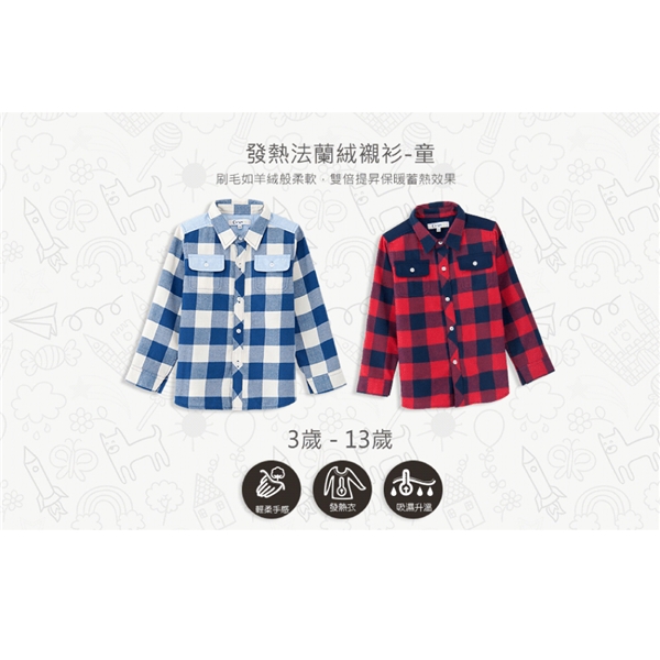 CorpoX 童款拼接發熱法蘭絨襯衫-4色